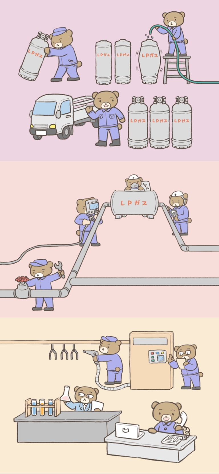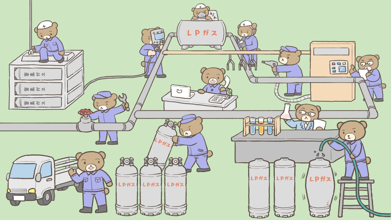 - ガスを詰めている所(充てん所)に、